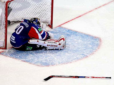 А дальше – почти на 74 (!) минуты – воцарилось голевое безмолвие. Пытаясь воспроизвести хронологию третьего периода основного времени и двух с половиной овертаймов, очень легко запутаться в том, какое из событий когда произошло. Но голевых моментов, даже несмотря на усталость, наваливавшуюся с каждой секундой все более тяжким грузом, было немало. Лисин убегал один на один, но не сумел переиграть Рамо; Аверин едва не забил по-бобровски, лихо выкатившись из-за ворот; Чистов пытался повторить свой фокус с ложным замахом и хитрой паузой, после его броска шайбу, отбитую голкипером и взмывшую в воздух, едва не смахнул рукой в собственные ворота Энджелл, она отскочила от Хлыстова, ударилась в спину Рамо и, на счастье гостей, доползла только до штанги. Ягр организовал очередной убойный момент, Гелашвили и Маленьких, столкнувшись, оба потеряли клюшки, и лишь титаническими усилиями хозяева спаслись от гола. В одном из эпизодов именитый чех ненароком зарядил коленом в голову вратарю магнитогорцев и опрокинул его на спину, Гелашвили судорожно старался подняться на ноги, в попытке остановить встречу сорвал с себя шлем и едва не получил серьезное повреждение – шайба просвистела в непосредственной близости от неприкрытой головы стража ворот. Роскошный шанс забить упустил Ролинек, не раз близок к успеху был Аалтонен, бросали с мыслимых и немыслимых позиций Червенка и Клименко. А главным, пожалуй, неудачником матча был Контиола. Он запорол несколько потенциально голевых атак и не сумел в упор пробить своего соотечественника. Прервать собственную полосу неудач мог Лисин, после того, как Сергей Федоров в меньшинстве в центре площадки эффектно обокрал Куляша и выдал классную передачу партнеру. Но тот, разочаровавшись в многочисленных попытках пробить Рамо, на сей раз бросать не стал (хотя этот выстрел, похоже, имел бы хорошие шансы на успех), а выбрал иное – крайне неудачное – продолжение. Кстати, о меньшинстве. На последней минуте основного времени арбитры оштрафовали Петра Вамполу, а спустя несколько минут после начала первого овертайма удалили Алексея Бондарева. Своими шансами реализовать численный перевес магнитогорцы распорядились неубедительно. И вскоре уже Георгий Мишарин получил две минуты за выброс шайбы. В пятом периоде хозяева были наказаны за нарушение численного состава, а в шестом удалился Контиола. Но, если в предыдущем поединке соперники на двоих реализовали три попытки из пяти, то в этом, имея вдвое больше шансов, не использовали ни одного.