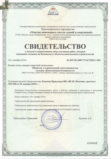 Переоформлен допуск СРО на строительные работы :: Альянс "Комплексная безопасность"